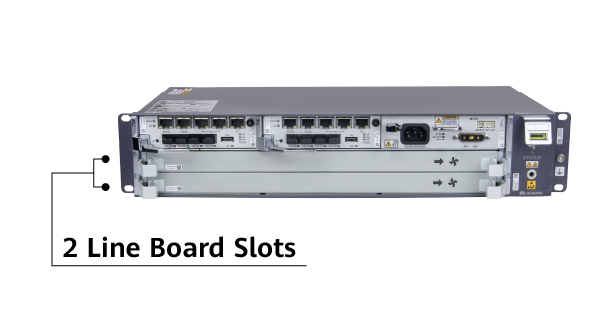 La carcasa MA5800-X2 está diseñada para su montaje en un rack de 19" y tiene una altura de 2U. Permite montar hasta dos tarjetas de línea PON o P2P, según las necesidades de la ubicación. En total, en una configuración OLT completa, puede proporcionar 32 puertos PON (GPON/XG-PON/XGS-PON), 96 puertos GE o 16 puertos 10GE.