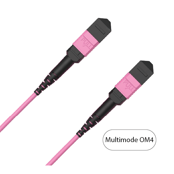El cable de conexión está equipado con un total de 12 fibras OM4 multimodo, que proporcionan un mejor rendimiento y distancias de transmisión más largas que las OM1, OM2 y OM3 utilizadas anteriormente.