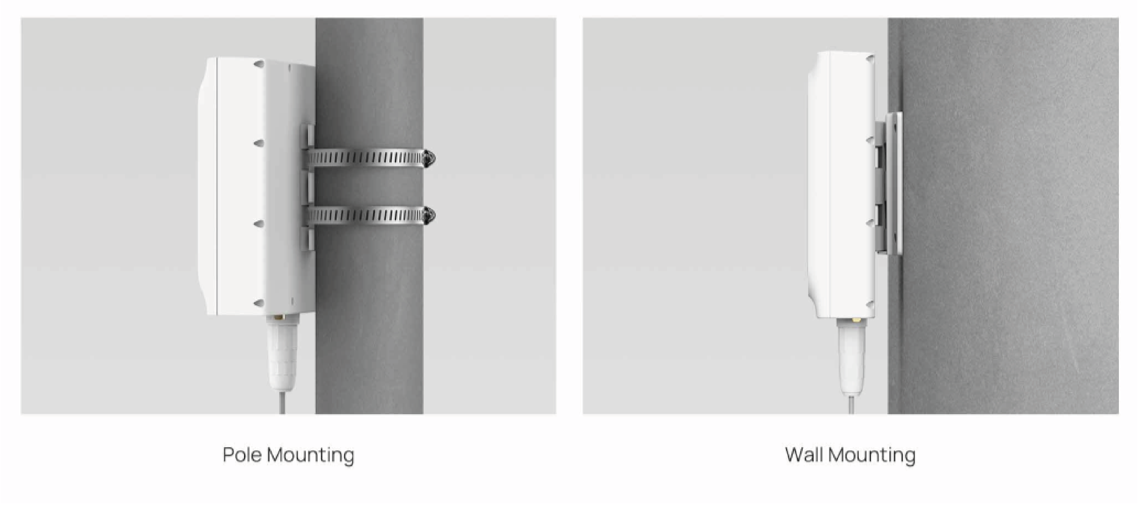 Equipped with omnidirectional antennas and a weatherproof enclosure (IP67), it is suitable for both indoor and outdoor environments. It can be mounted on walls, poles, or masts.
