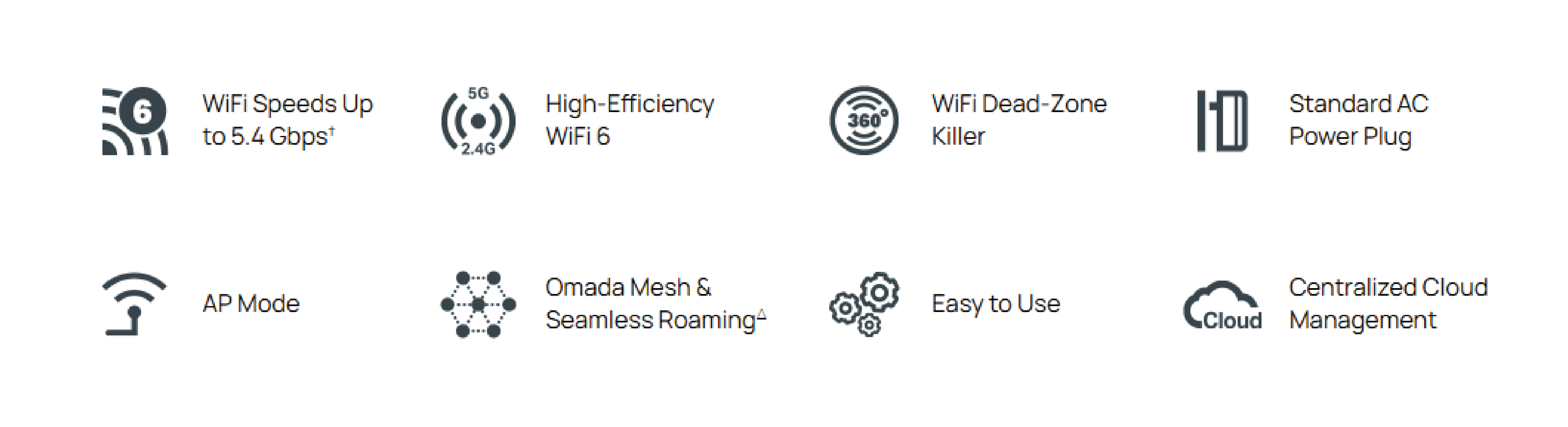 The built-in Access Point mode in the EAP673-Extender offers a strong and stable Wi-Fi signal without the need for a PoE switch or infrastructure upgrade. This functionality also increases flexibility and lowers deployment costs.