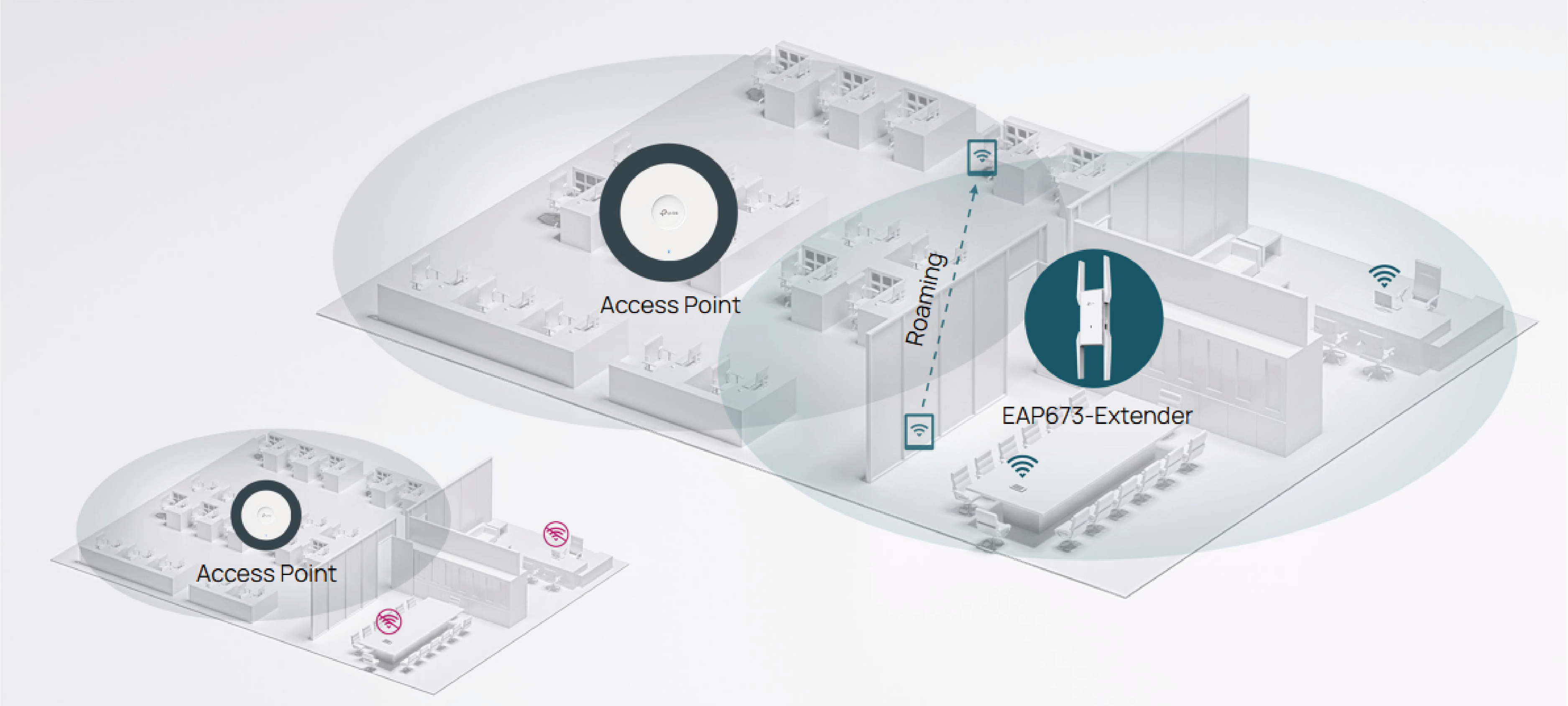The EAP673-Extender, equipped with high-performance antennas and Mesh technology, effectively eliminates signal dead zones, increasing coverage by up to 140m². Enjoy seamless roaming and uninterrupted connections!