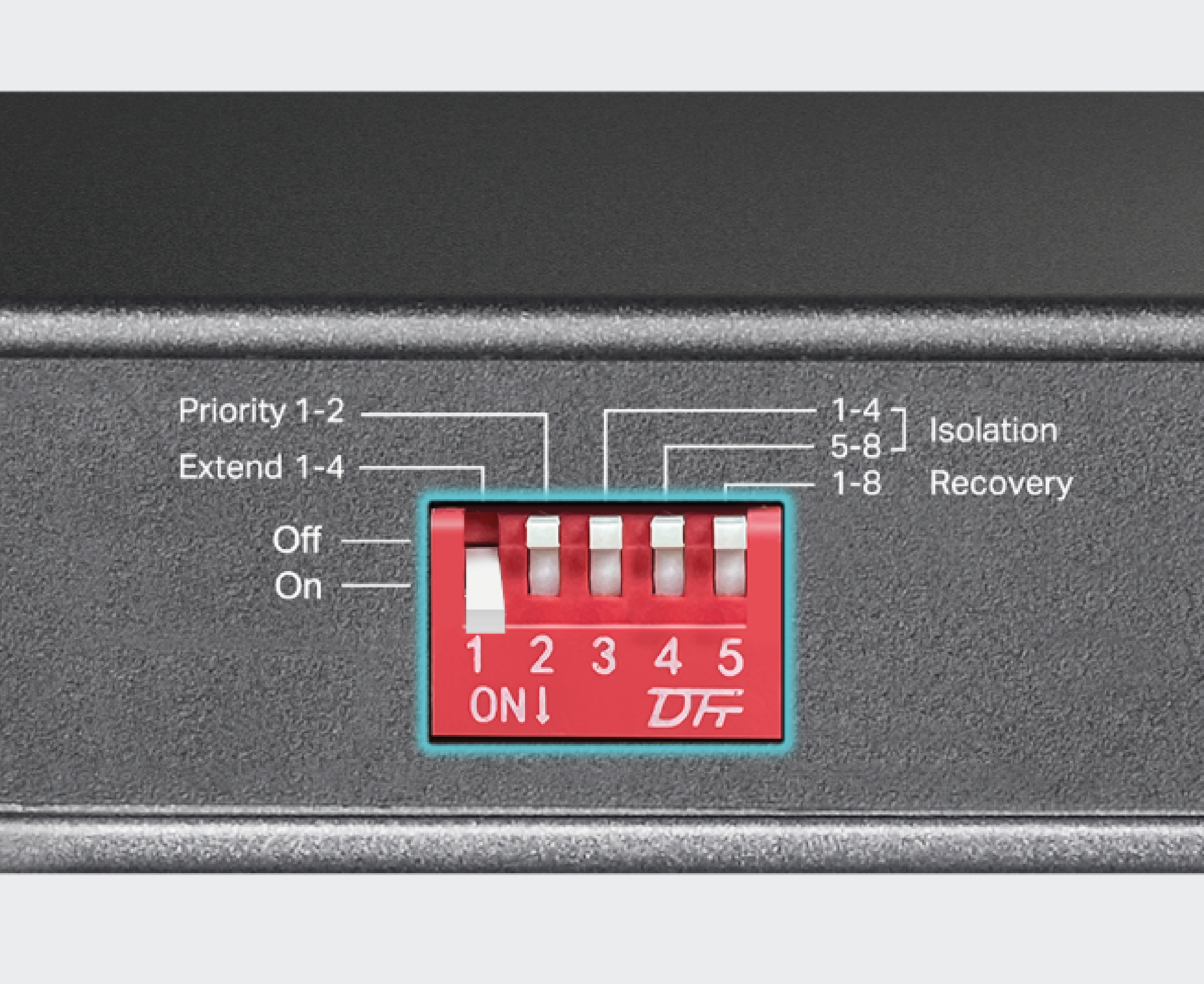 Extend Mode (Ports 1-4, up to 250m PoE power and data transmission)