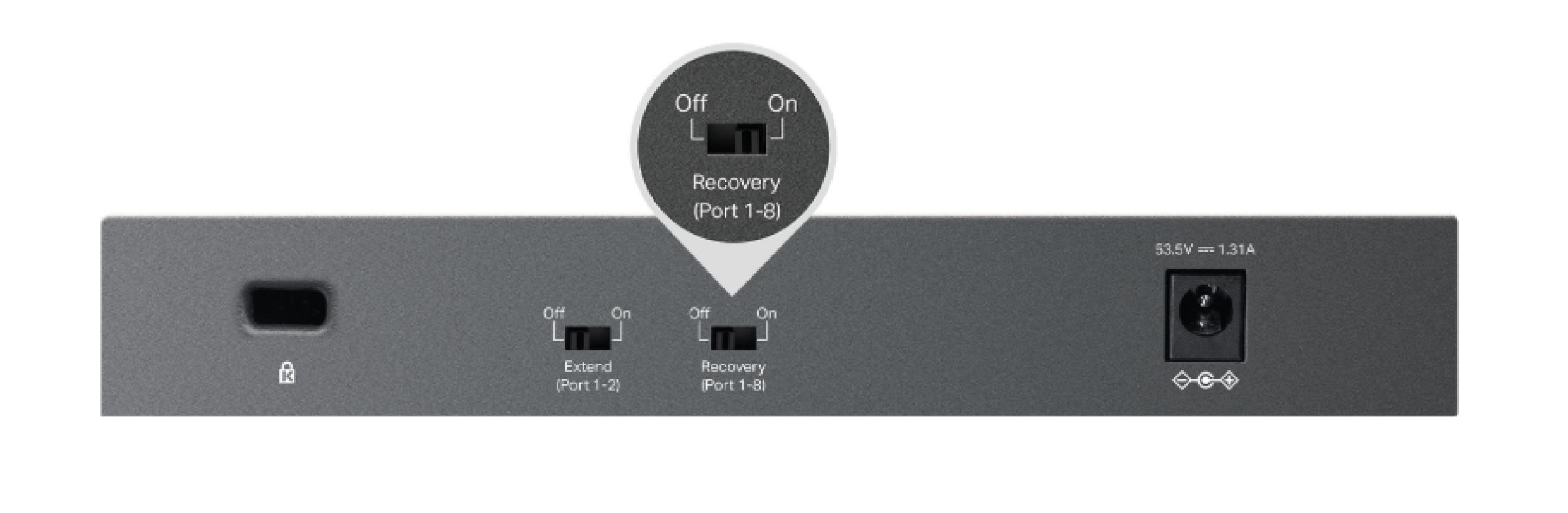 Recovery Mode enables automatic detection and restarting of PoE devices, such as cameras and access points, when they stop operating or responding. Forget about manual monitoring and device restarts.