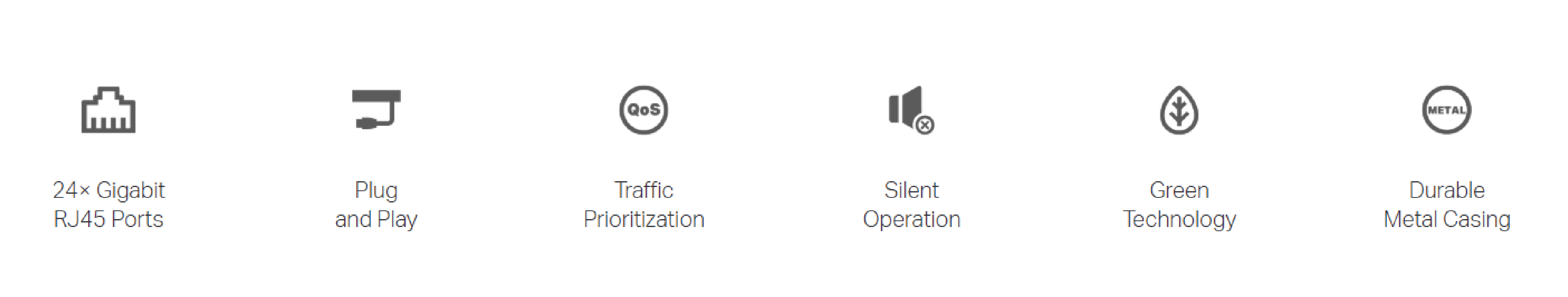 Ports | 24× 10/100/1000 Mbps RJ45 Ports Auto-Negotiation Auto MDI/MDIX |