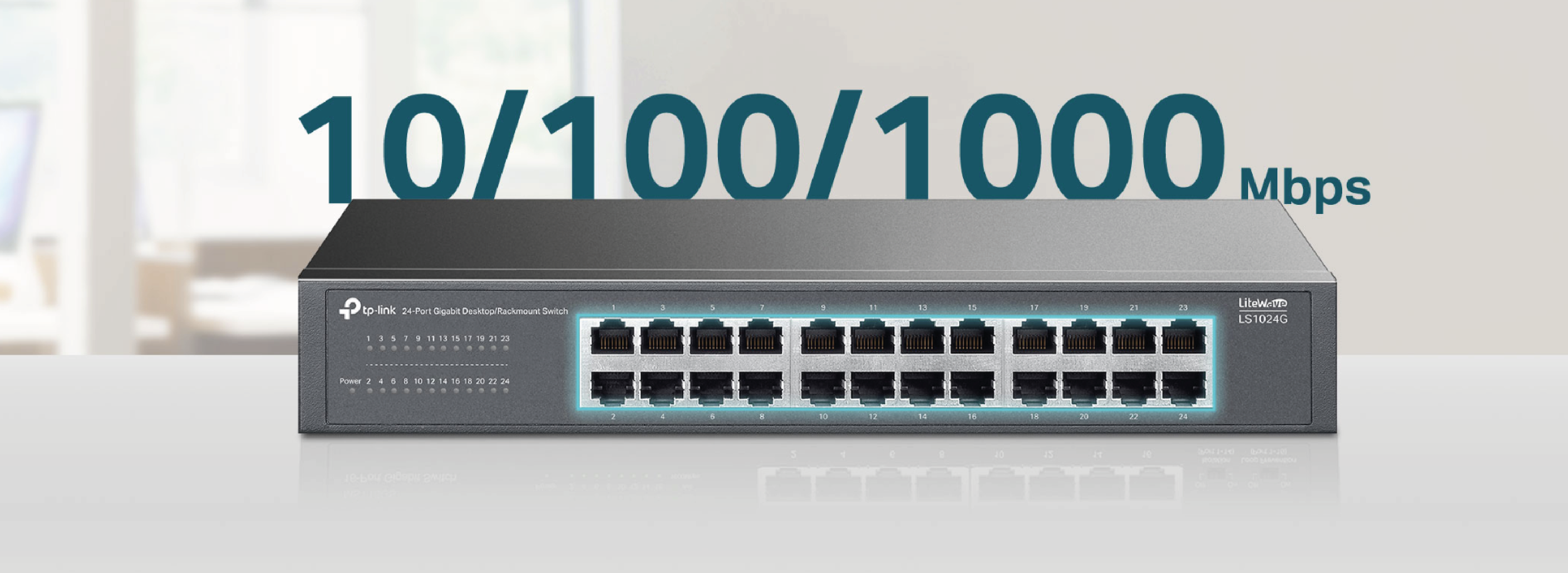 Quickly expand your wired network with twenty-four 10/100/1000 Mbps Ethernet ports—10 times faster than regular 10/100 Mbps Ethernet ports. LS1024G offers flexible connectivity and is fully compatible with 4K UHD TVs, computers, printers, IP cameras, game consoles, and more.