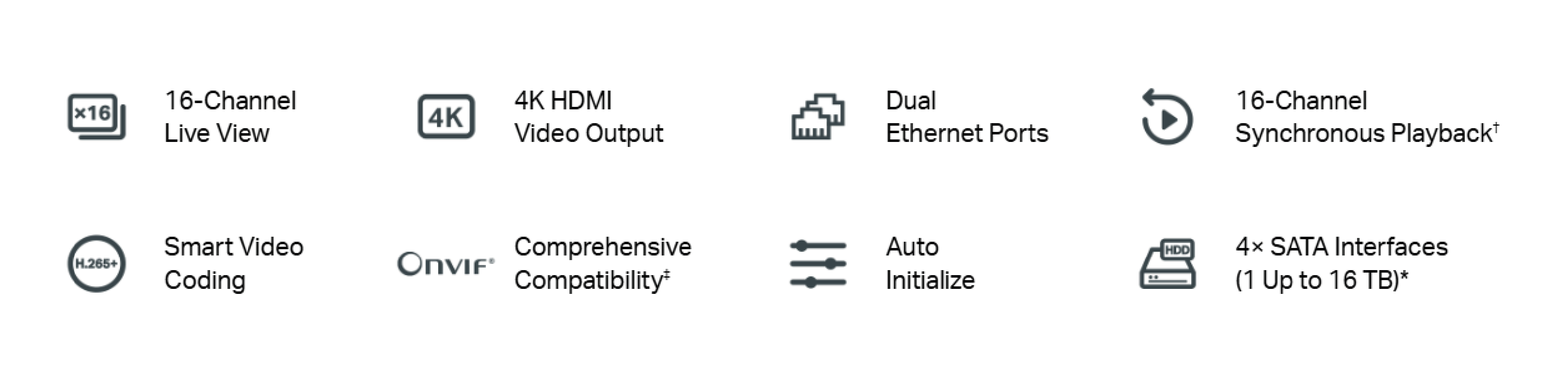The TP-Link VIGI NVR4016H is an IP recorder designed for the professional VIGI system. It supports 16 channels with a maximum resolution of 8 Mpix (4K) and is equipped with four SATA connectors, to which you can connect hard drives with a total capacity of up to 64 TB (16 TB per drive).