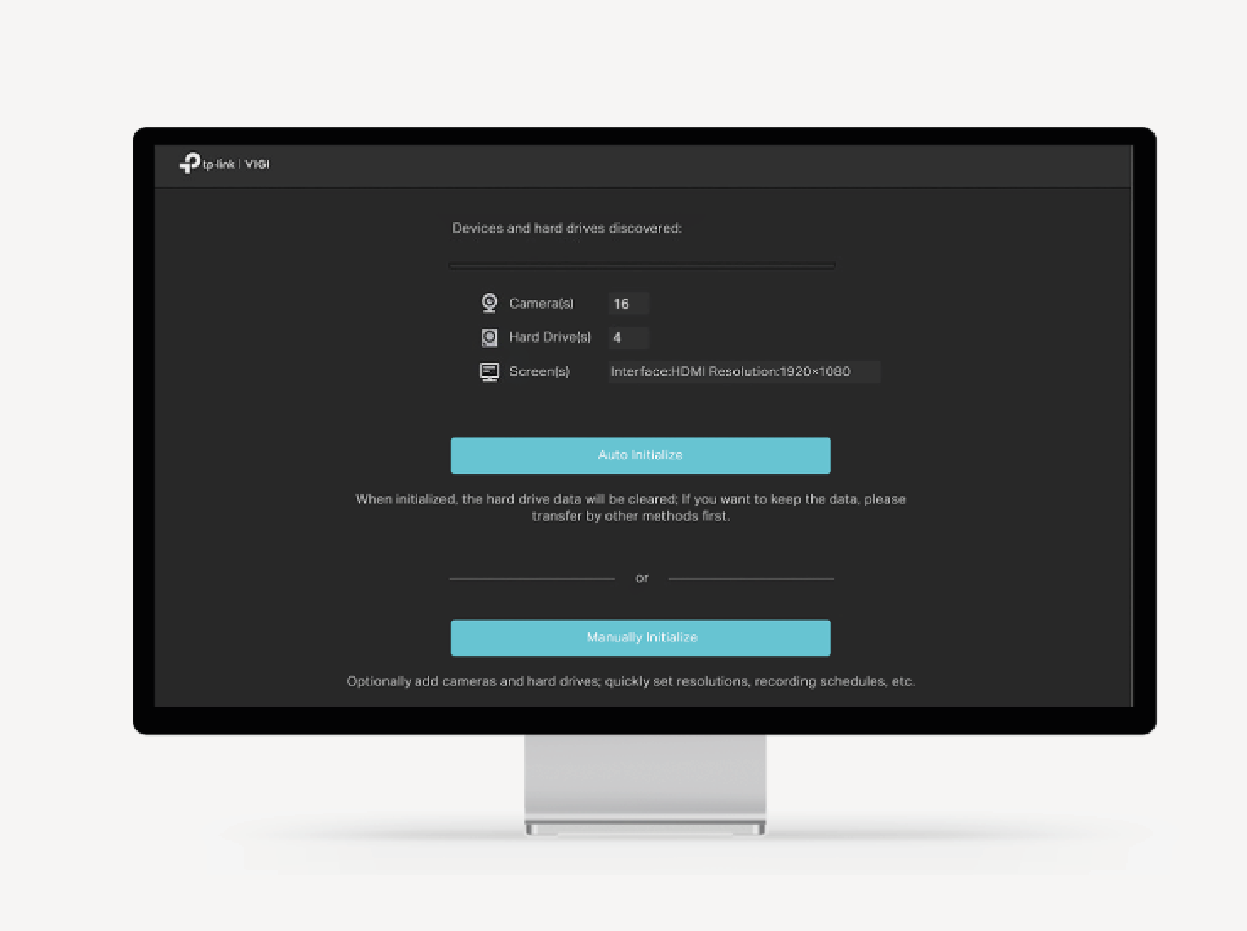 Simply click "Auto Initialization" to configure the basic parameters of the camera and hard drive, significantly shortening the time needed for setup.