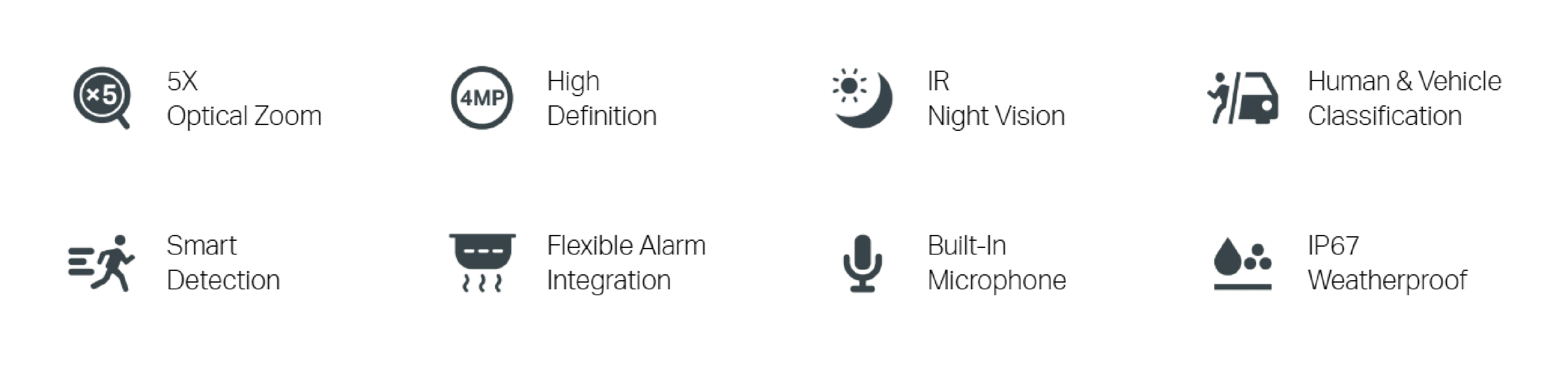 - Smart IR: Dynamically adjusts infrared illumination to prevent overexposure and glare, thereby increasing visibility at various distances and providing a clearer image.
