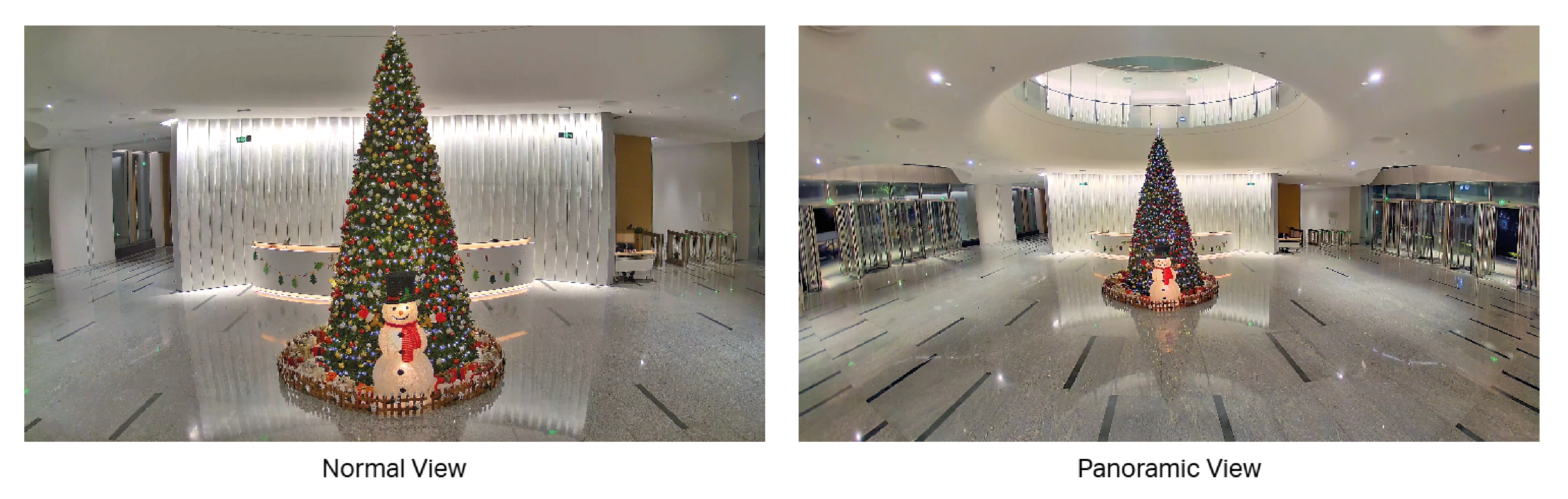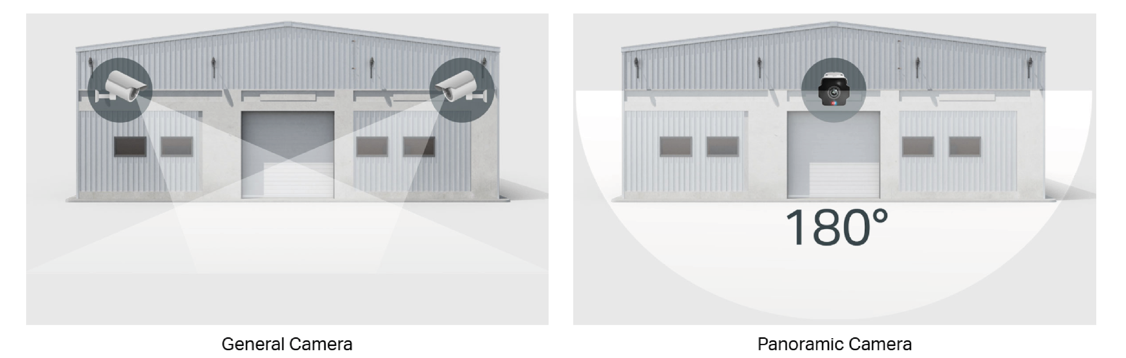 Using standard cameras requires multiple devices to cover blind spots in large areas such as hotel lobbies, playgrounds, intersections, or warehouses, which increases costs. A single panoramic camera with a 180° field of view and 4K resolution reduces installation, deployment, and maintenance costs while providing greater coverage of the monitored area.
