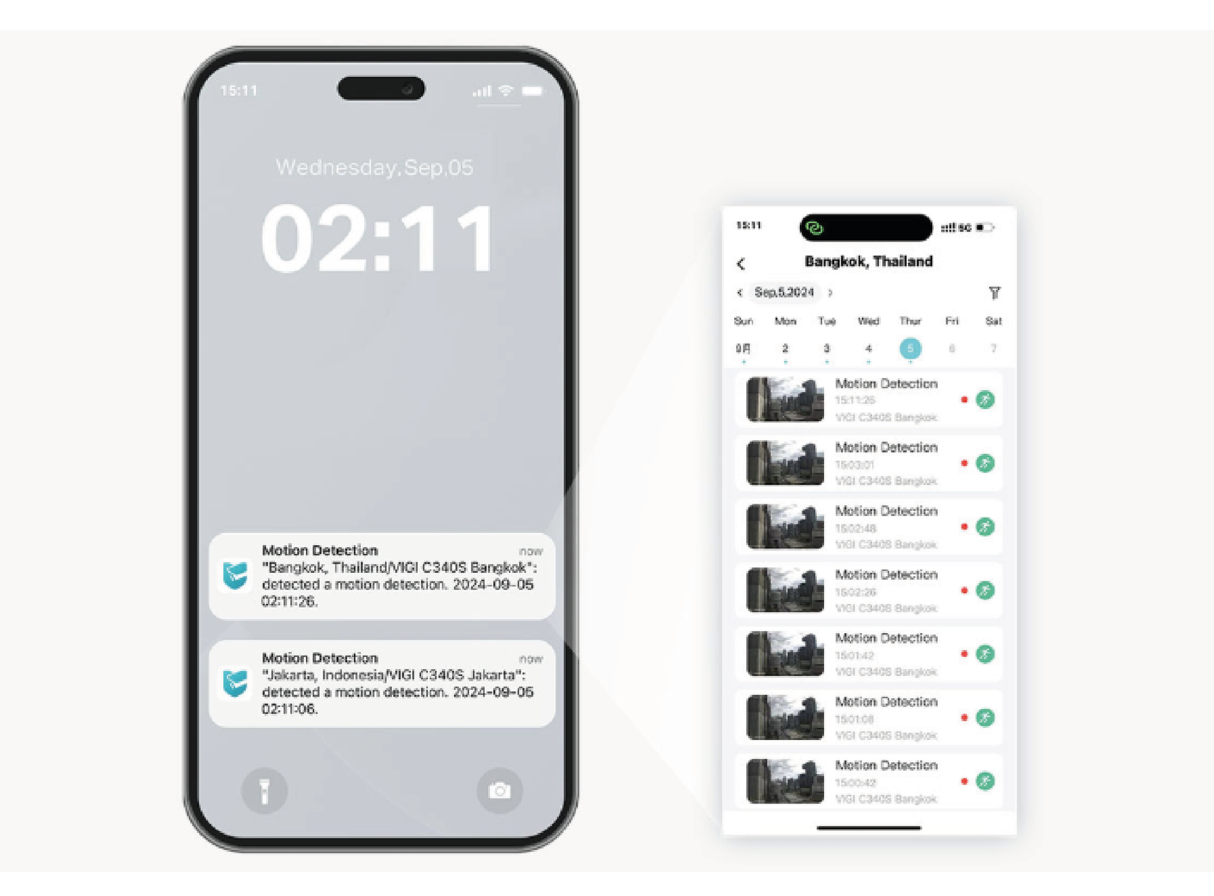 When the AI function or an external alarm device detects an event, an alarm is immediately triggered and an alert is sent to your phone.
