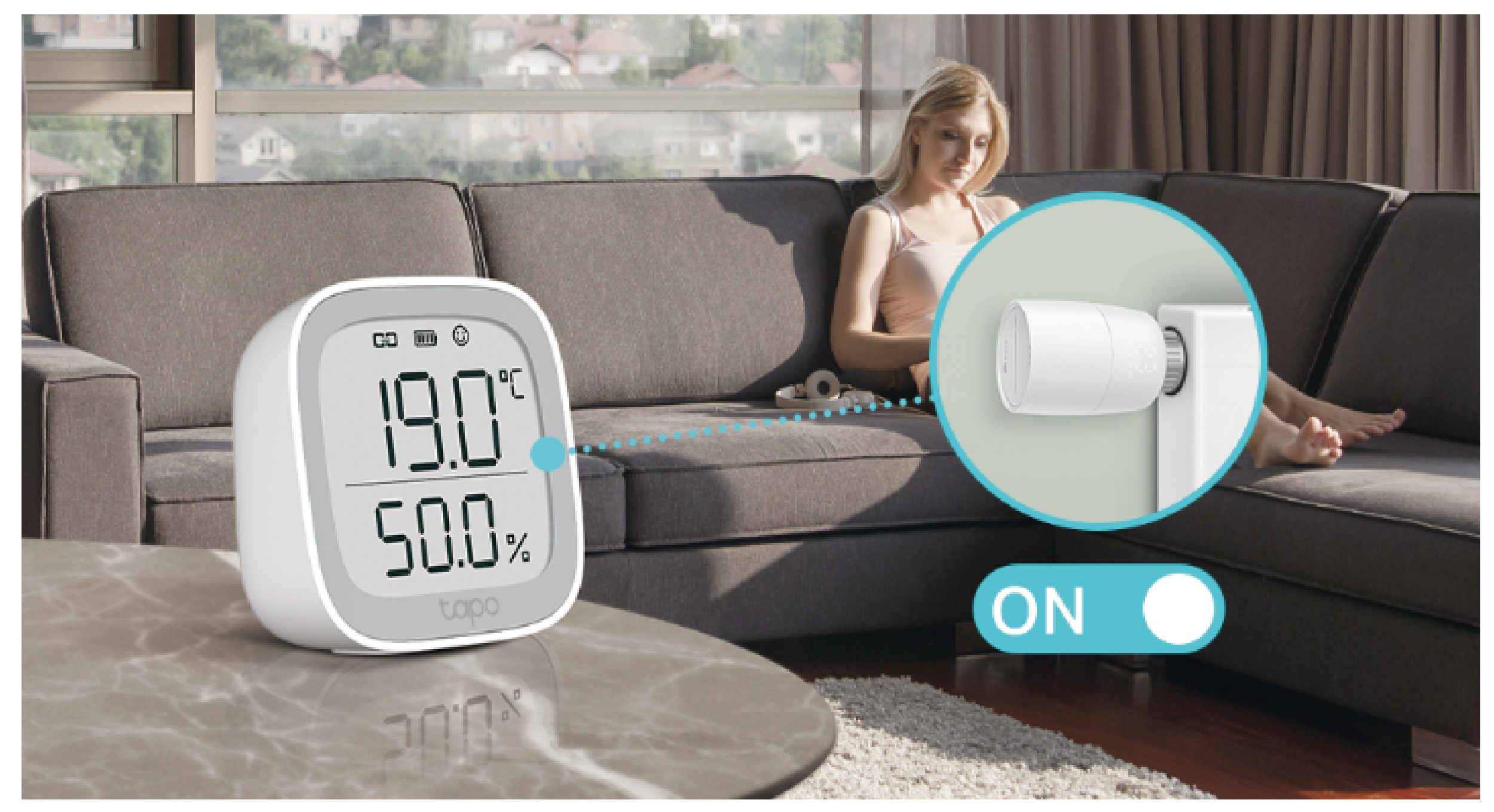 Support for external temperature sensors such as Tapo T310 and Tapo T315 allows for precise temperature control in any part of the room, by automatically adjusting the thermostatic valve based on readings from these sensors - not just near the radiator.