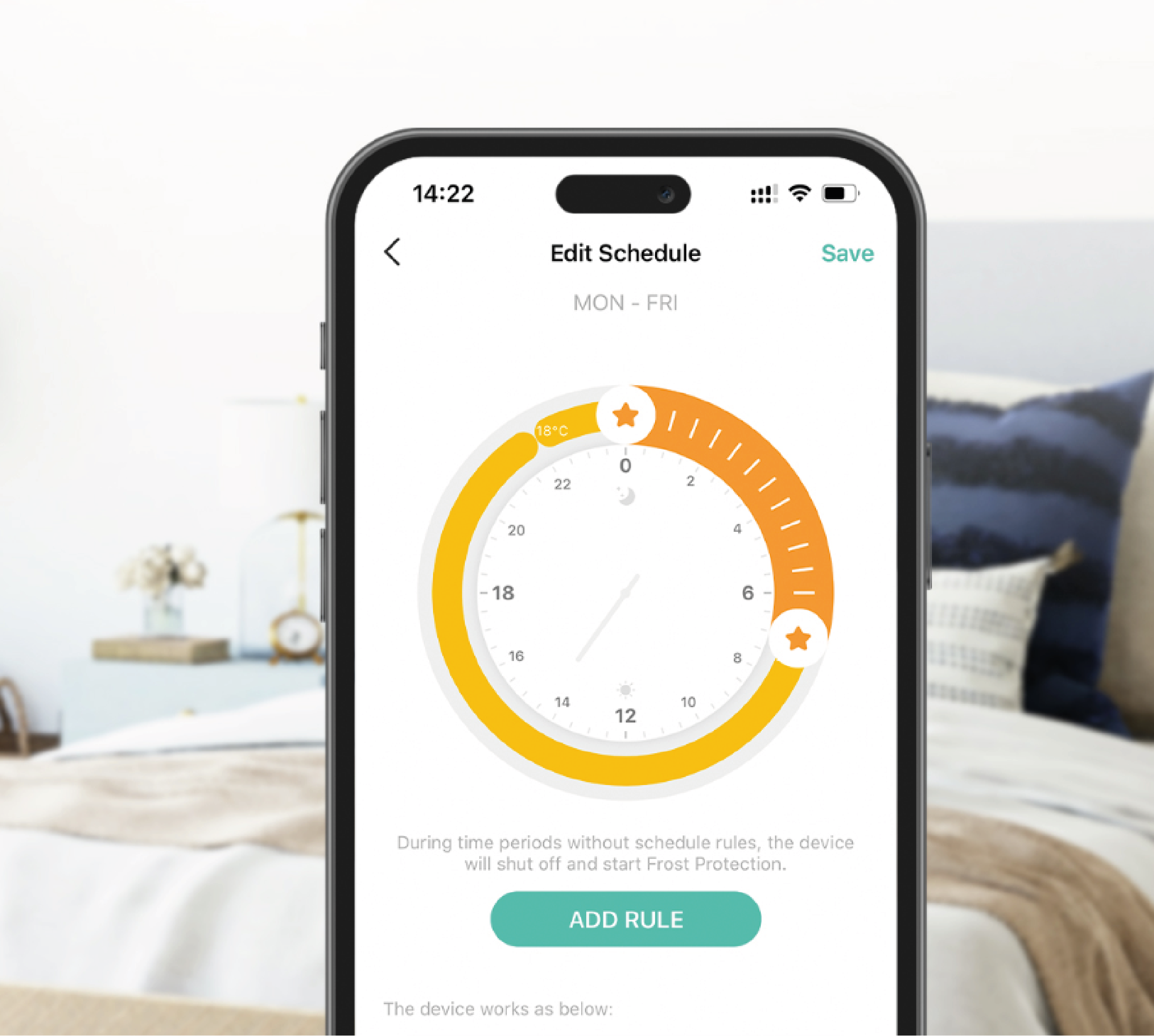 Set a heating schedule for each room based on your daily routine, saving on energy bills.