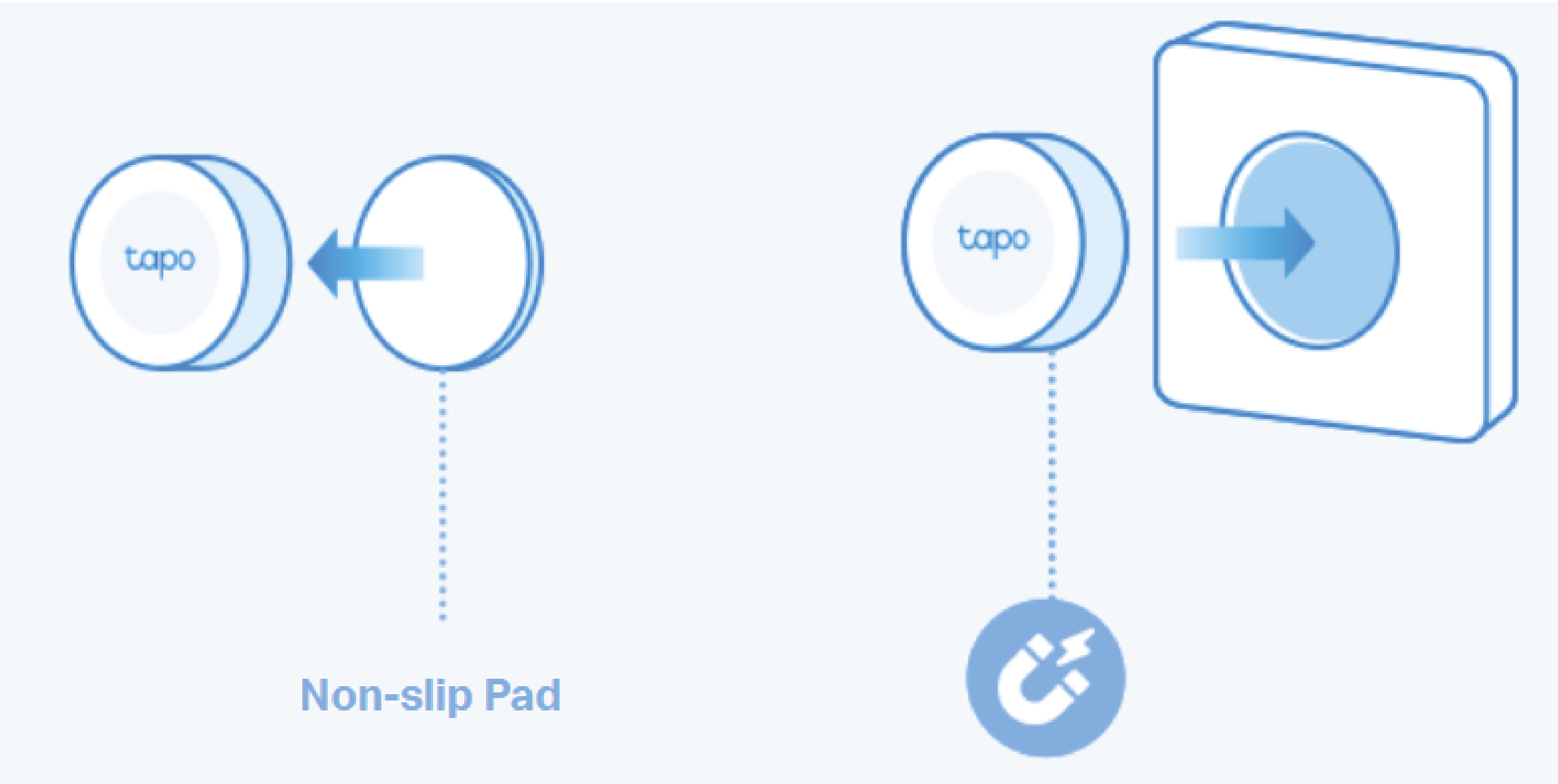 Package Contents | 1 Tapo S200D Button 1 Wall Plate 1 CR2032 Battery 1 Anti-slip Pad 1 Double-sided Tape Quick Installation Guide |