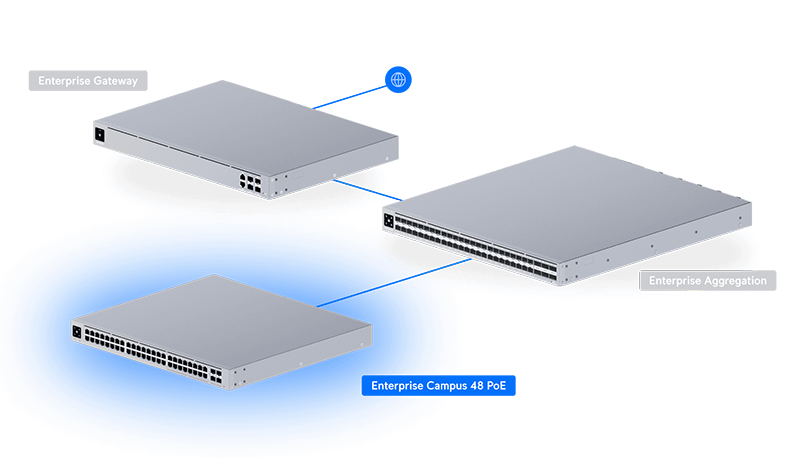 Ubiquiti Enterprise Campus 48 PoE switch L3 32x 10GE, 16x 2.5GE, 4x SFP28, 48x PoE+++ (2150 W)