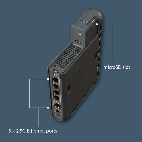 5 × 2.5G Ethernet ports, microSD slot