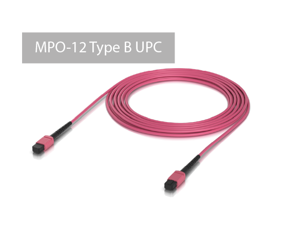 The offered product is a duplex fiber optic patch cord terminated on both ends with MPO-12 Type B UPC connectors. This is a standard widely used in various QSFP modules.