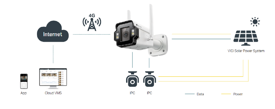 The InSight S345-4G camera offers 3 LAN ports, making it possible to connect up to 3 additional devices. This is an ideal solution for connecting to a solar power system to eliminate the need for additional cabling.