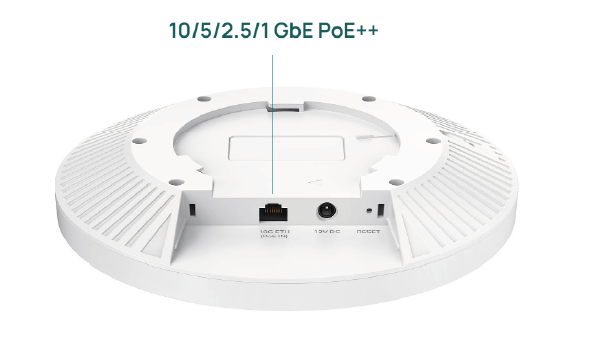TP-Link EAP787 is a professional ceiling mount access point operating in the latest Wi-Fi 7 (802.11be) standard, offering a total theoretical throughput of up to 12000 Mbps. The device operates simultaneously in three bands: 2.4 GHz, 5 GHz, and 6 GHz, allowing for significant reduction in interference and optimization of traffic in modern network environments. Thanks to the Wi-Fi 7 standard, the access point utilizes channels with a width of up to 320 MHz in the 6 GHz band and 4K-QAM modulation, which translates into significantly higher performance and lower latency compared to previous generations. EAP787 is equipped with a 10 Gb/s Ethernet port, which eliminates bottlenecks in wired transmission and allows for full utilization of the BE12000 potential. Advanced technologies such as Multi-Link Operation (MLO) enable client devices to transmit data simultaneously across different bands, while Multi-RU and Puncturing functions optimize the use of available radio spectrum. The device fully integrates with the Omada SDN platform, enabling centralized management of the entire network infrastructure from the cloud or a hardware controller. The housing is designed for discreet ceiling mounting, and power is supplied via the PoE++ standard or a dedicated DC power adapter, facilitating installation in locations with difficult access to power outlets.