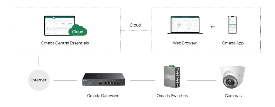 • Free, simple, and centralized cloud management via Omada Central Essentials