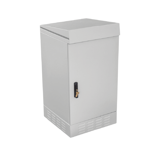 The cabinet features an IP54 protection rating and is suitable for outdoor use. The construction is protected against the ingress of water and dust. This is a freestanding cabinet that can be appropriately anchored to the ground (e.g., concrete), mounted on a telecommunications manhole, or placed on a pedestal (sold separately).