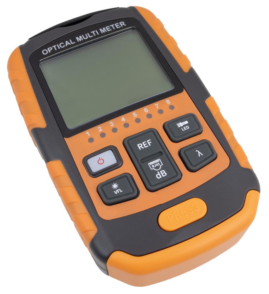 Opton OMM-10A es un medidor de potencia óptica con un probador RJ45 incorporado. El dispositivo funciona en el rango de potencia de -70 d dBmo 6, su gran ventaja es su versatilidad - es compatible con longitudes de onda: 850/980/1270/1300/1490/1310/1550/1577/1625/1650 nm. También tiene un probador RJ45 incorporado,